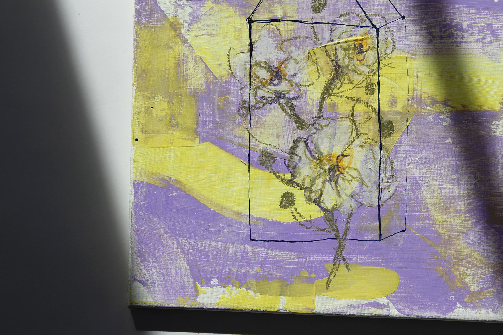 acryl, tusche und ölkreide auf baumwolle,