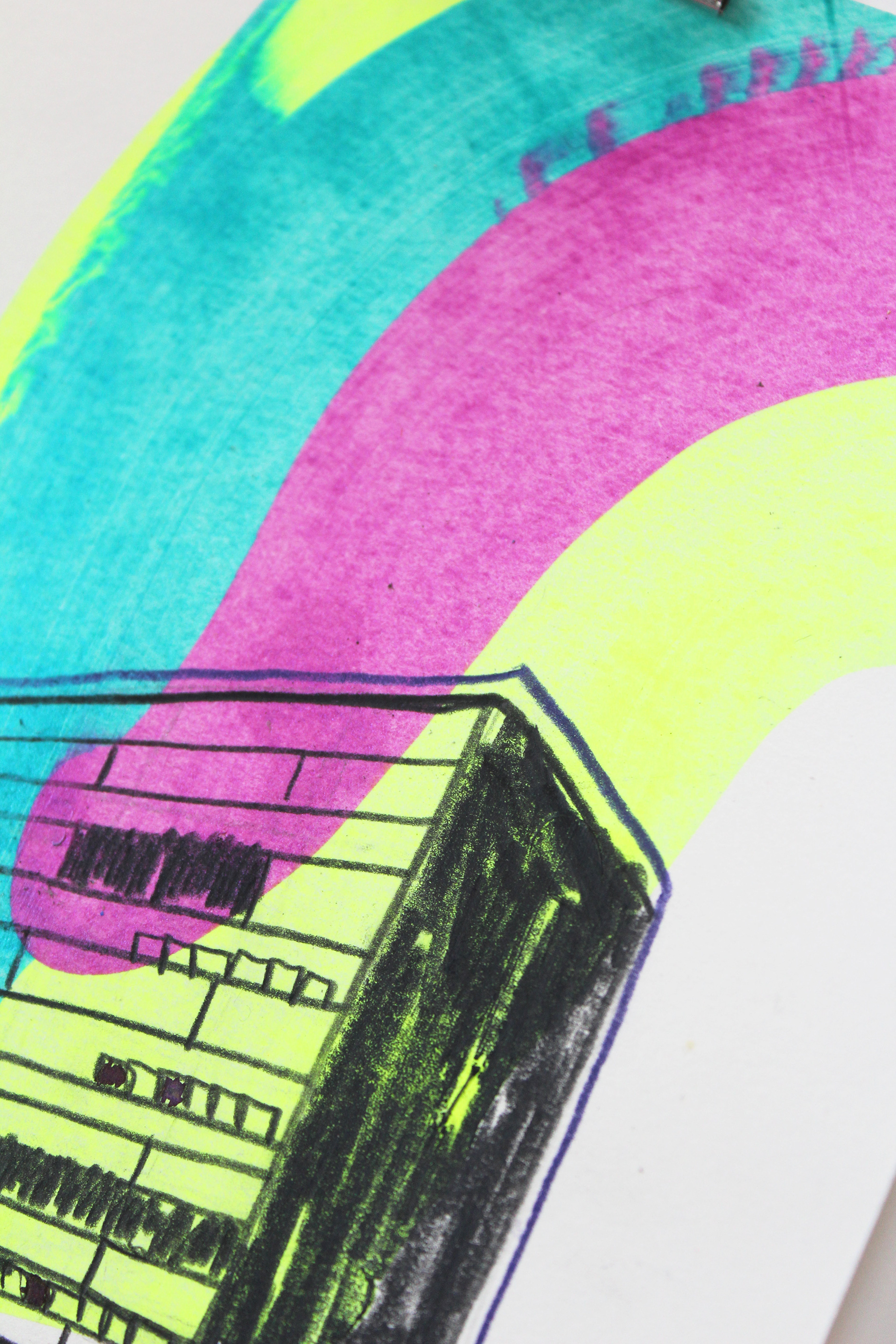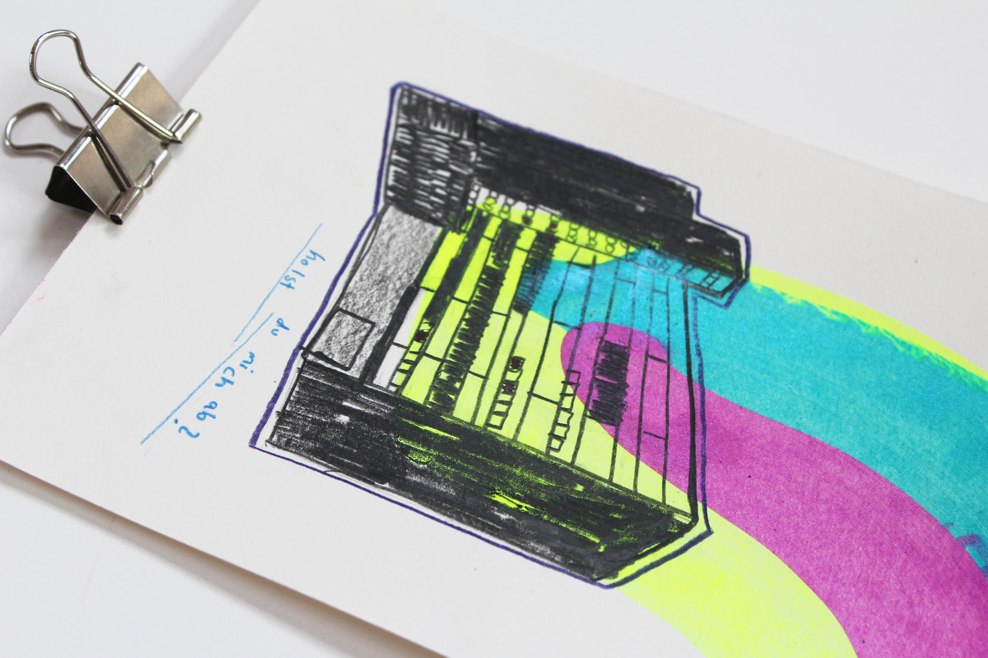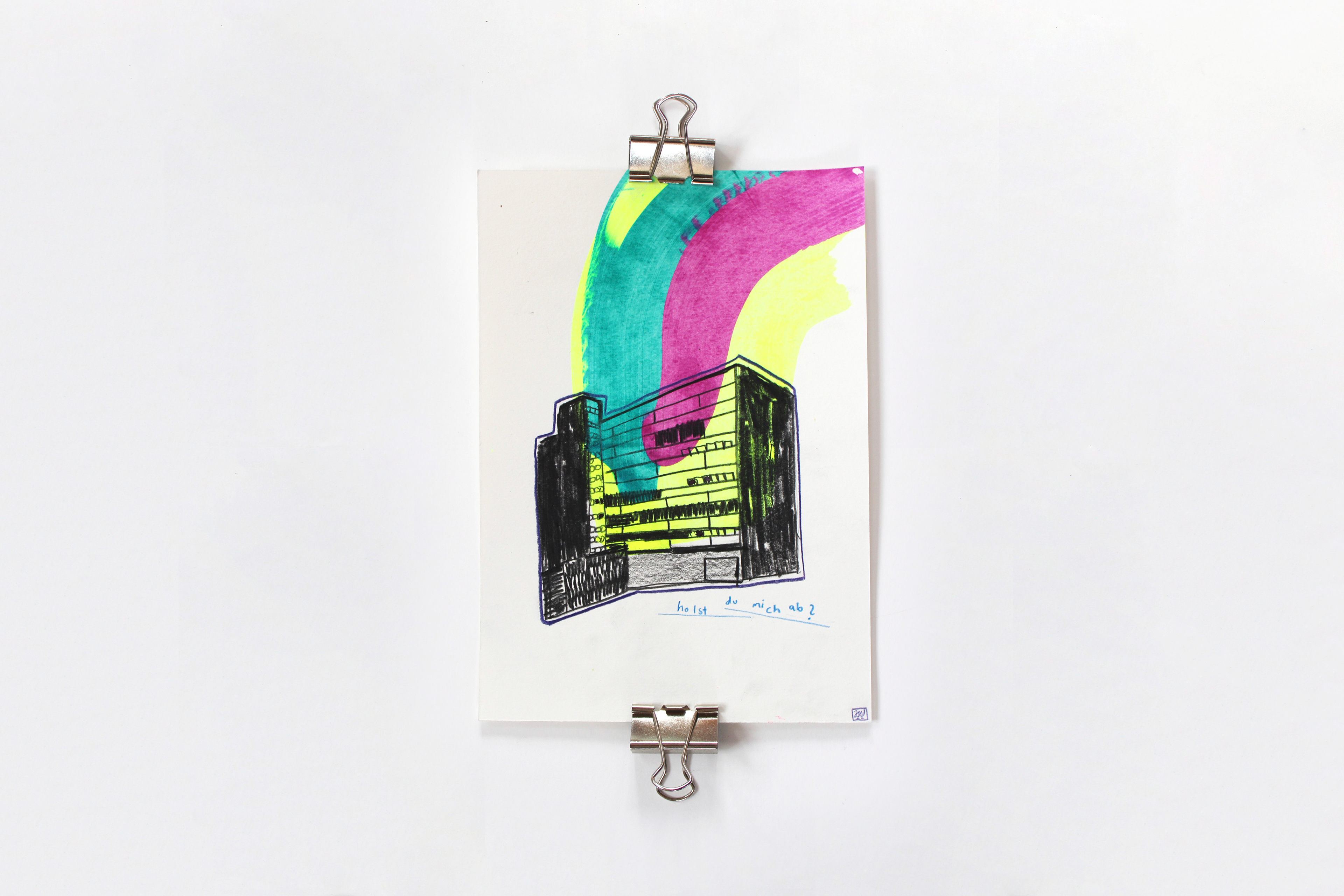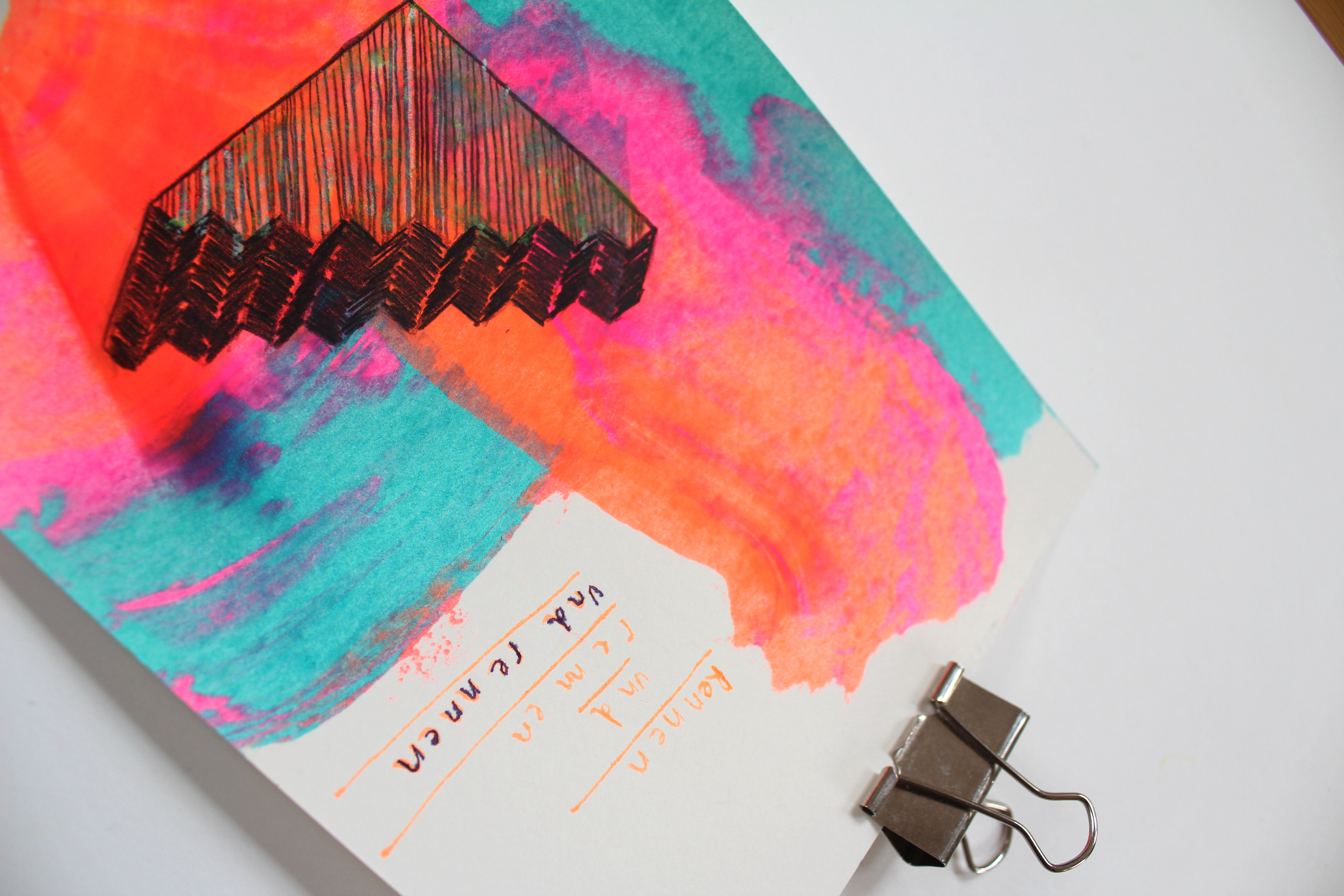acryl, buntstift, tusche, neonfolie und ölkreide auf creme bzw. grauem papier