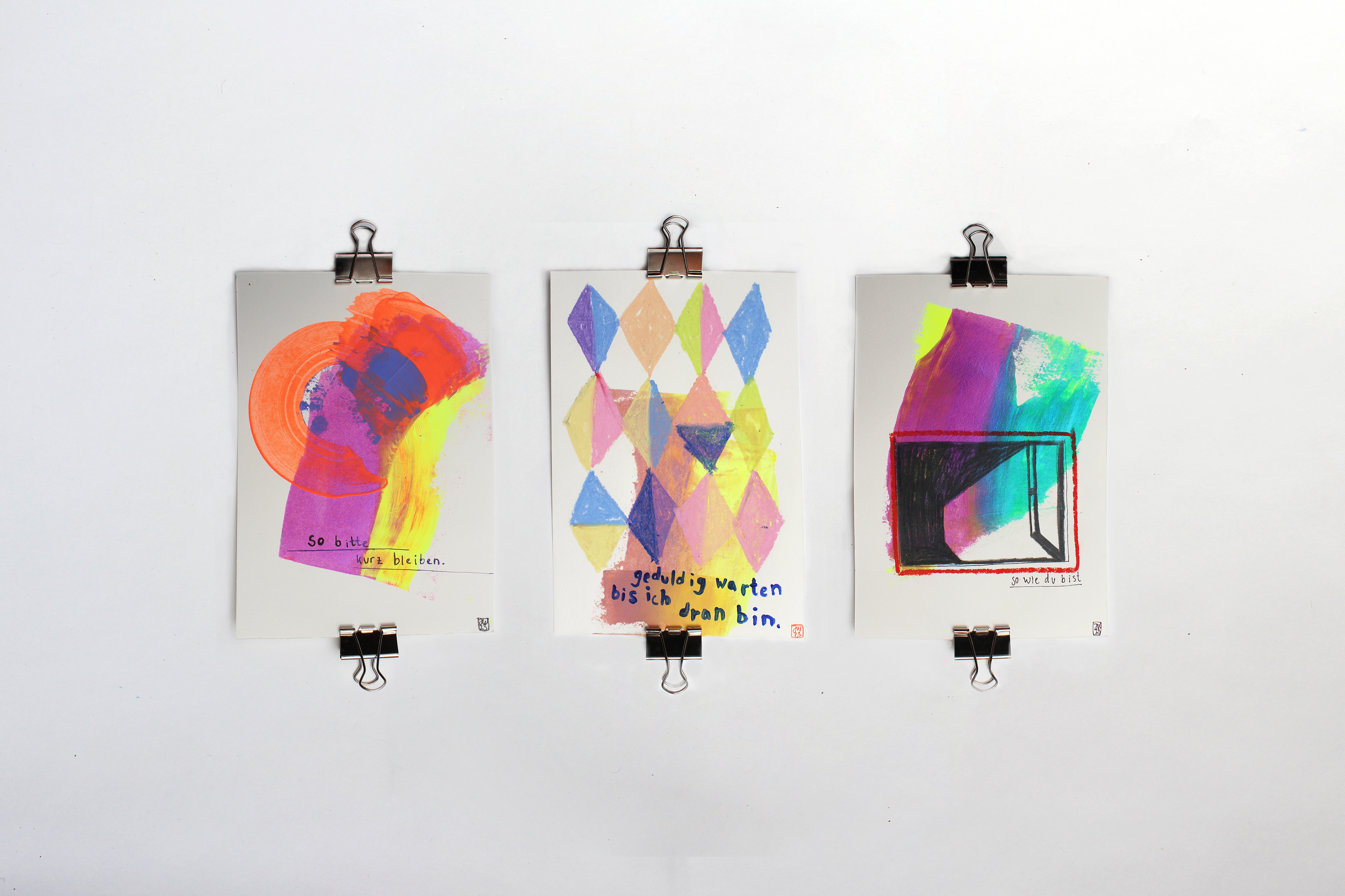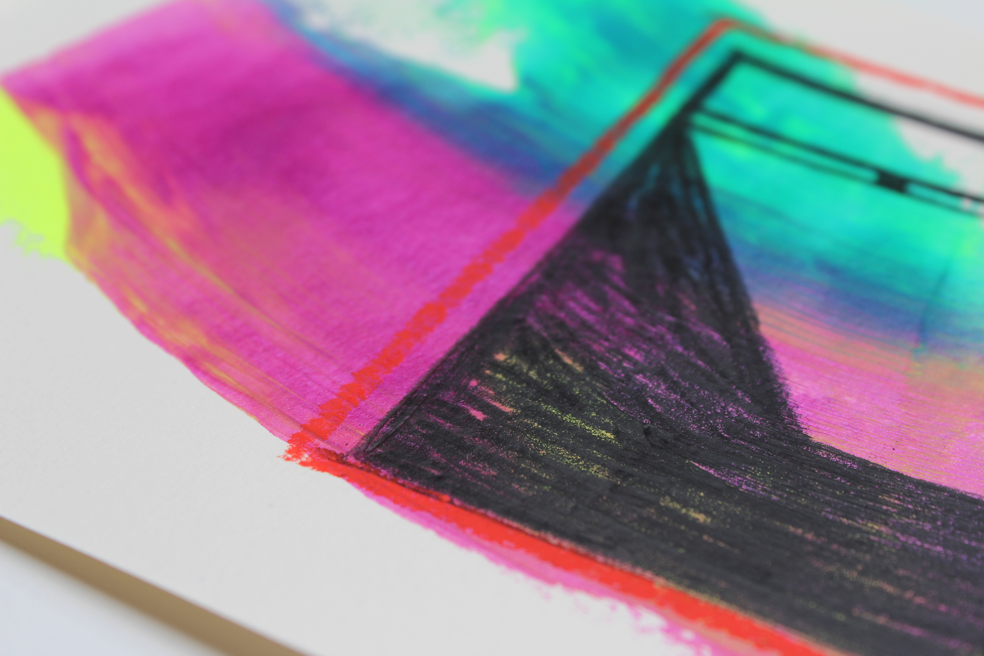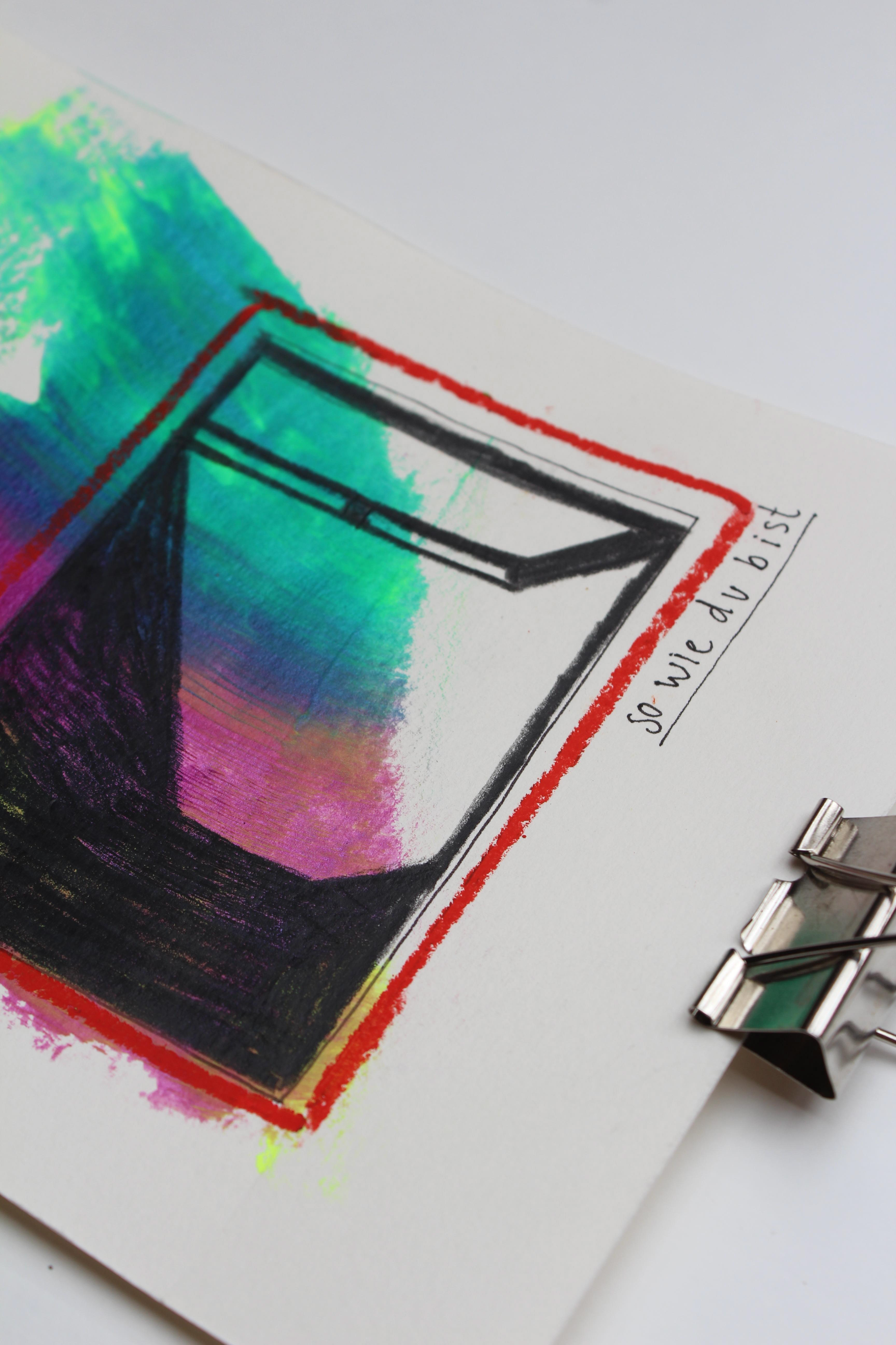 acryl, buntstift, tusche und ölkreide auf creme papier