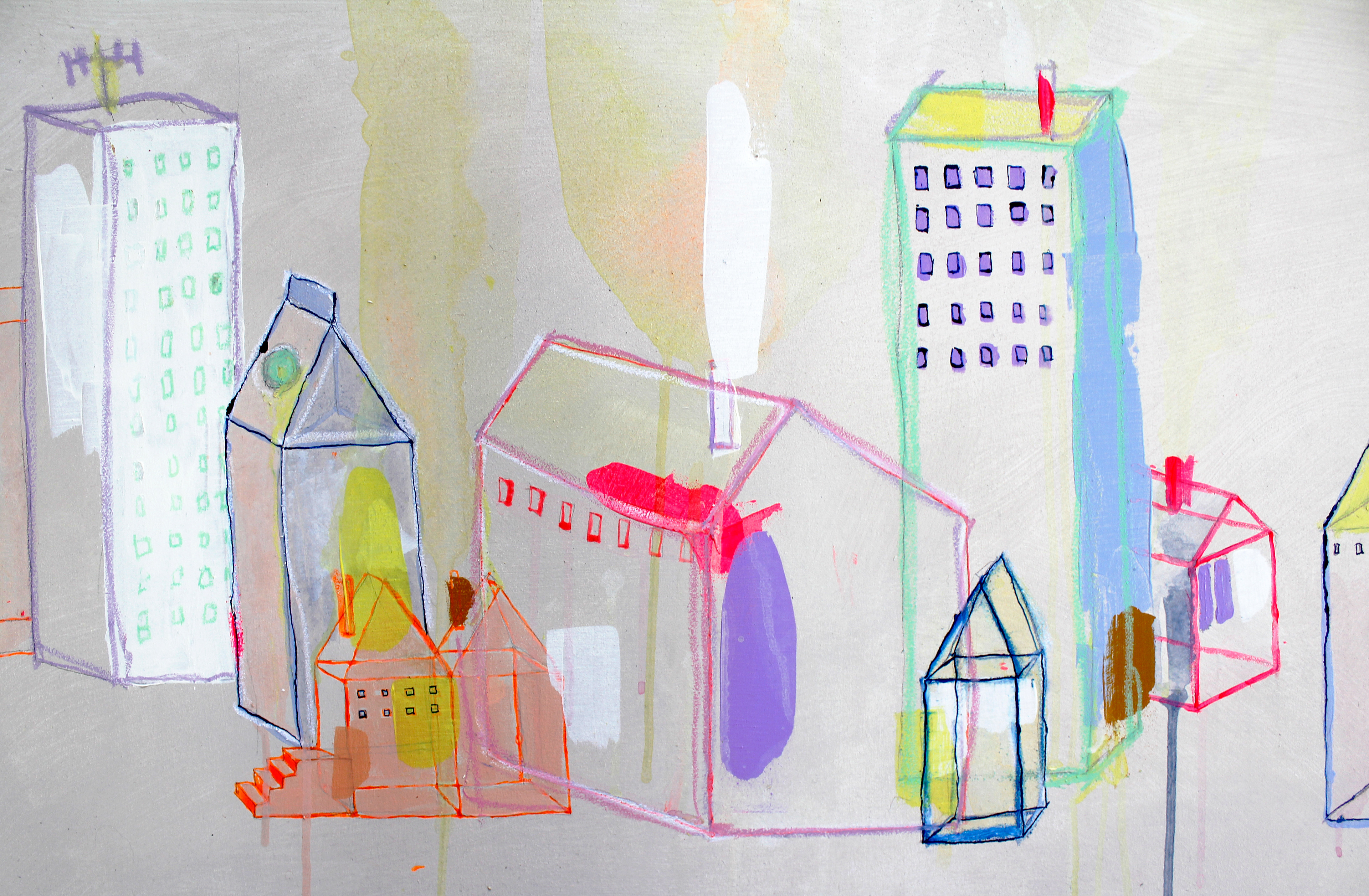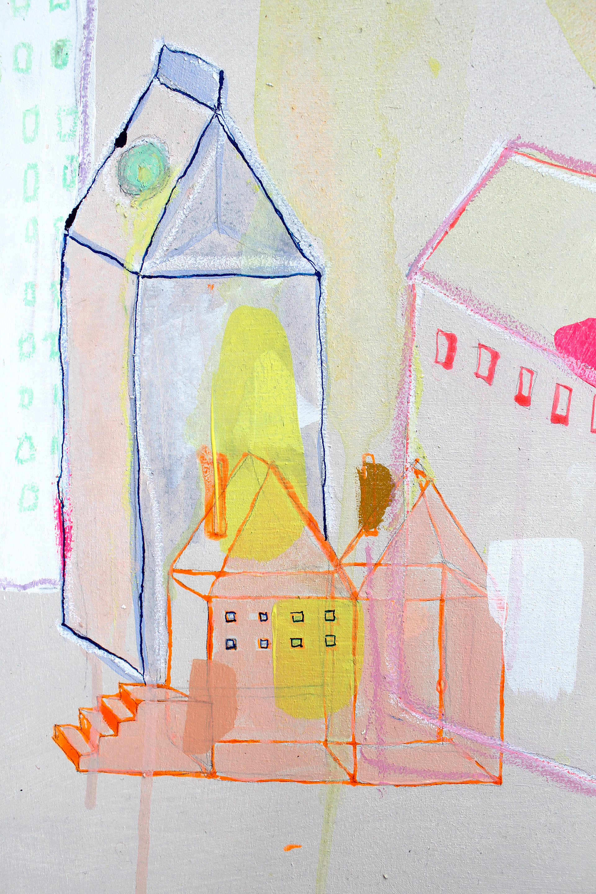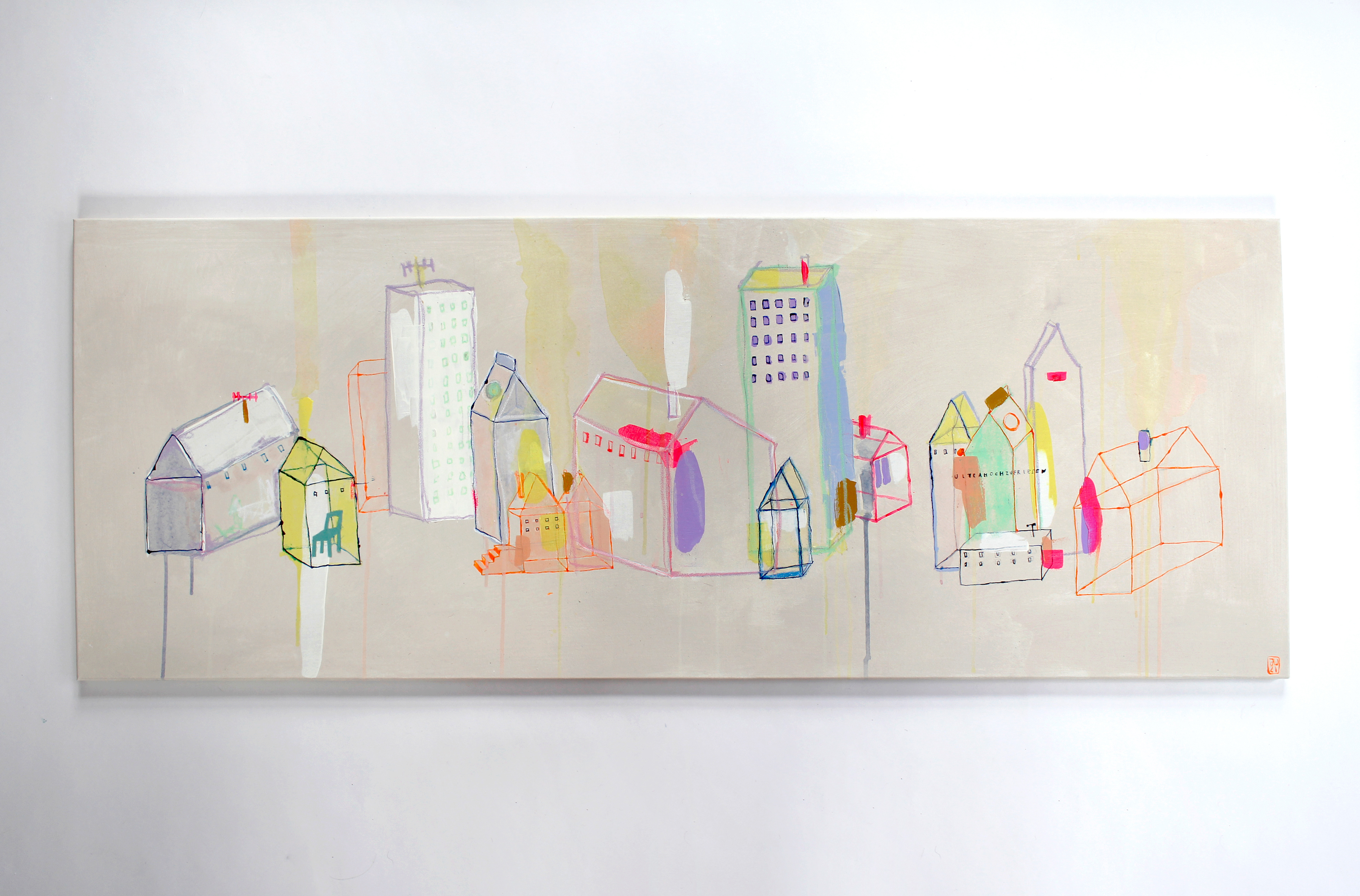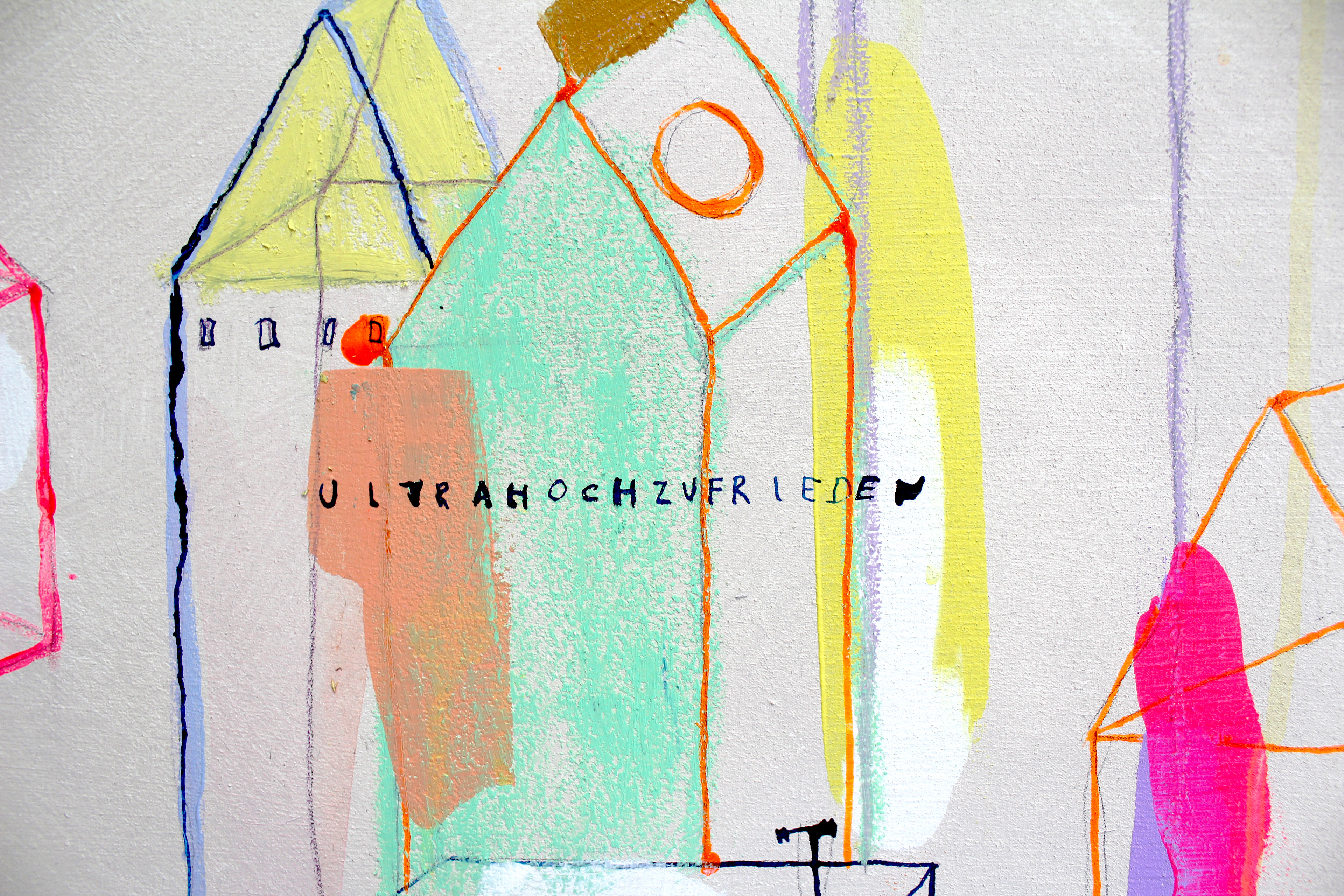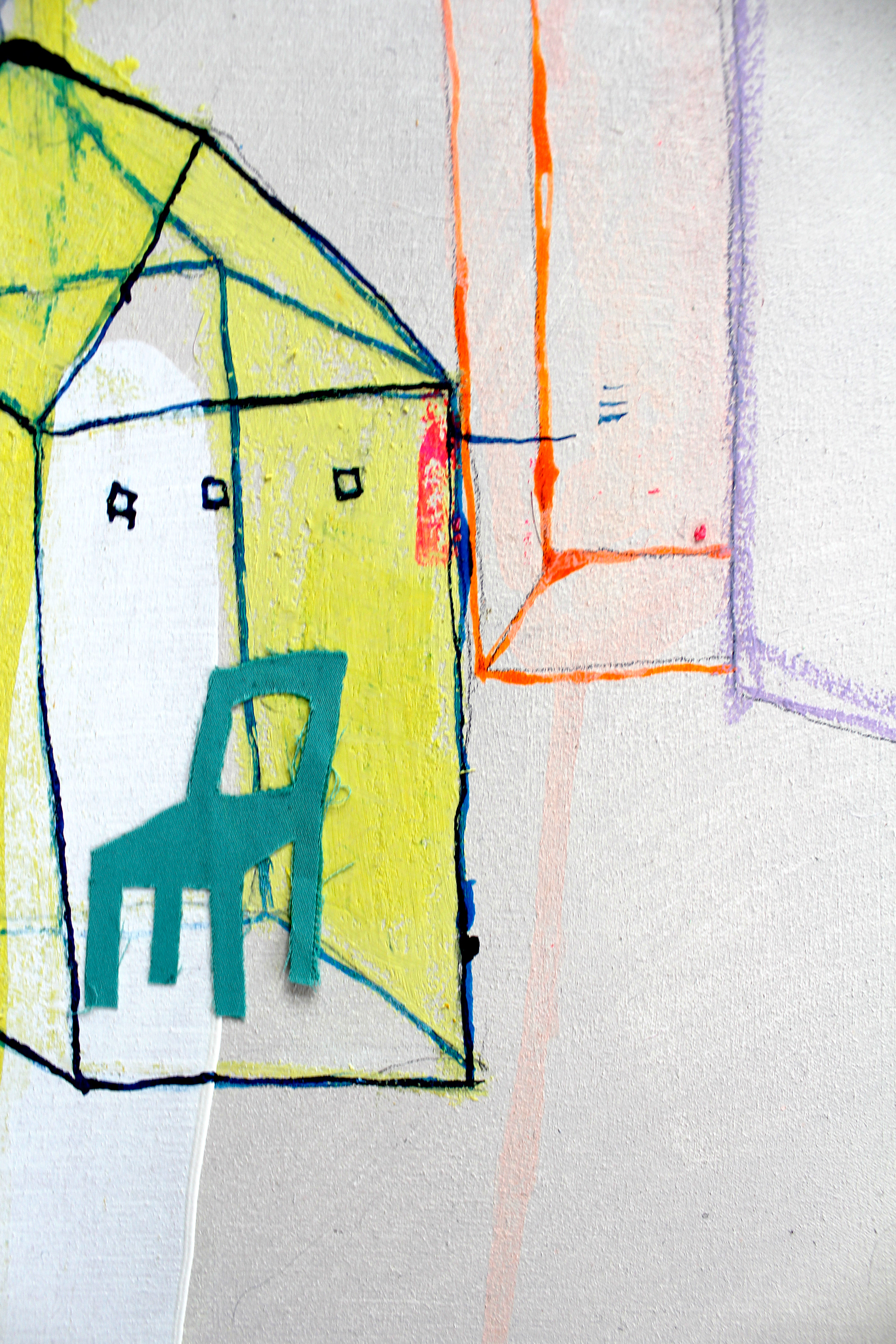 Acryl, Ölkreide, Tusche und Aquarell auf Baumwolle