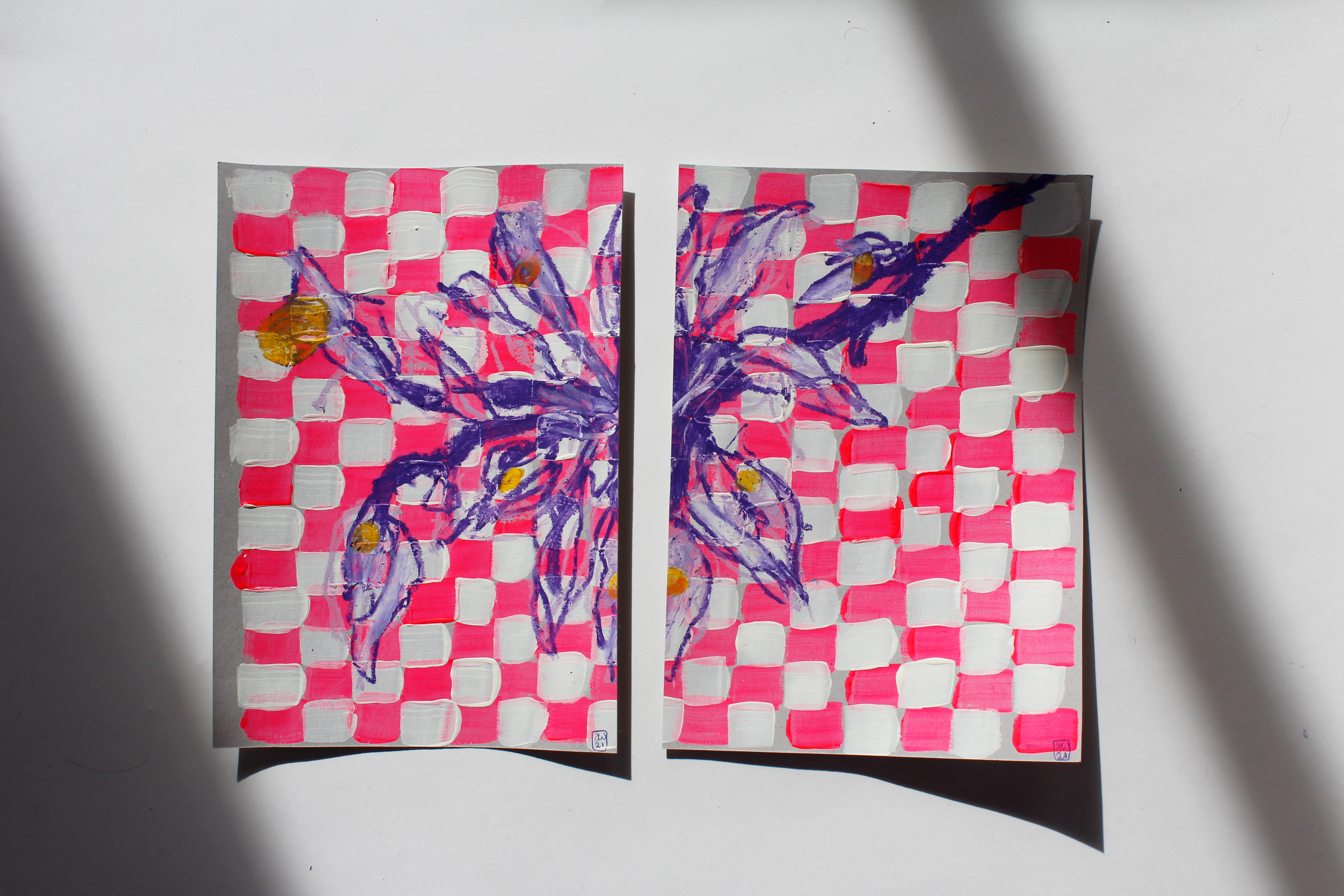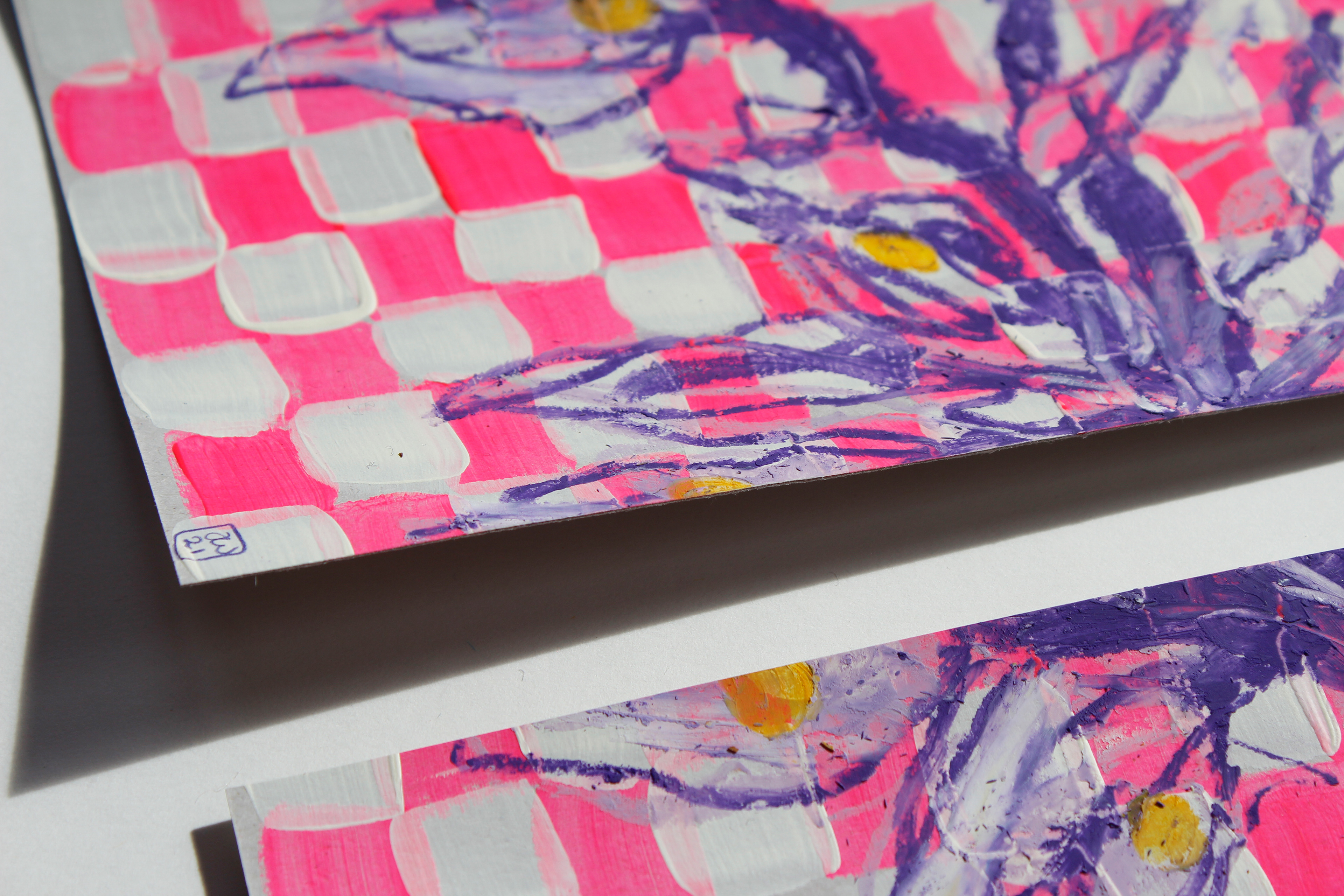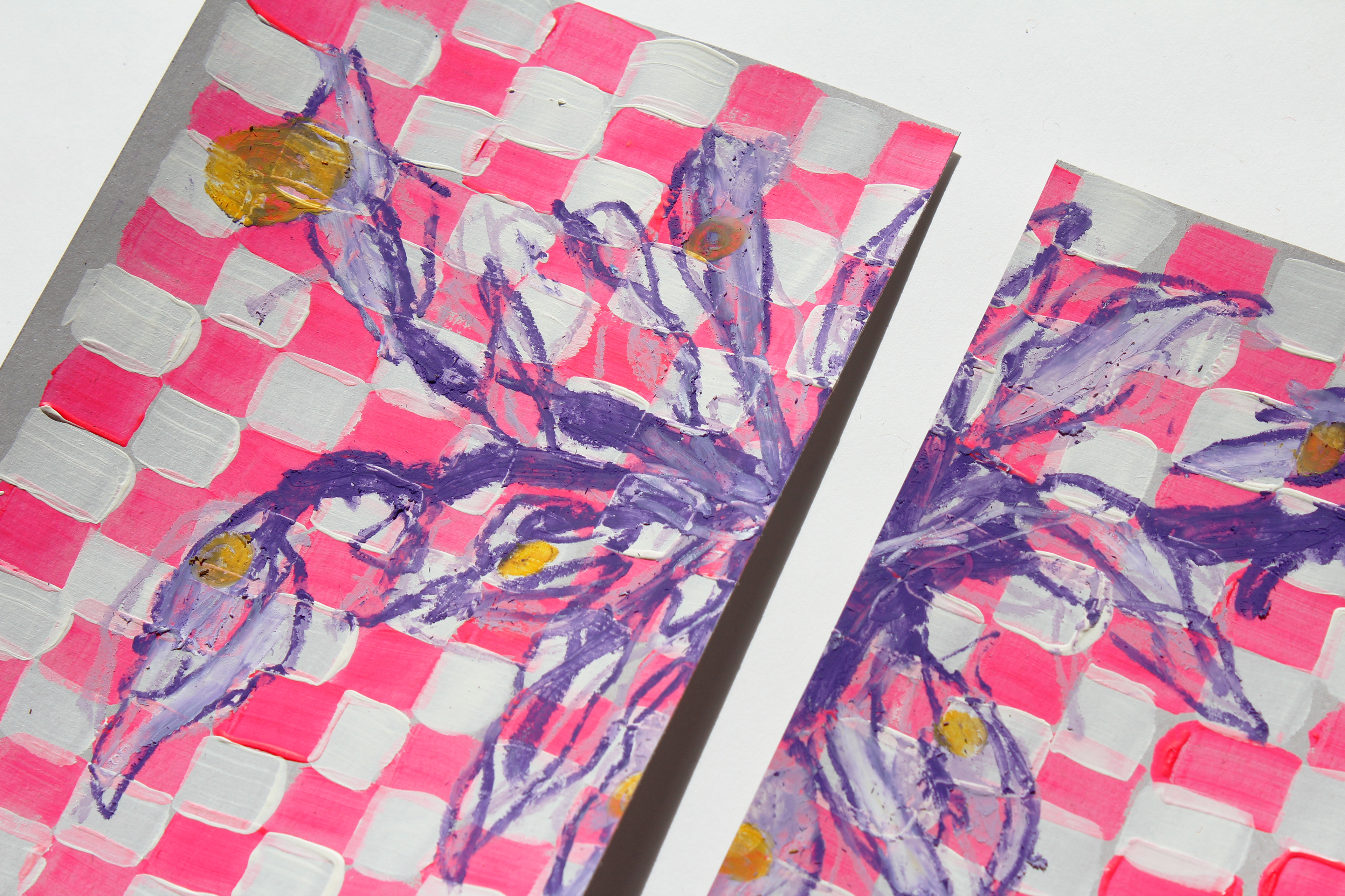 Acryl und Ölkreide auf grauem 230 g/m² Papier
