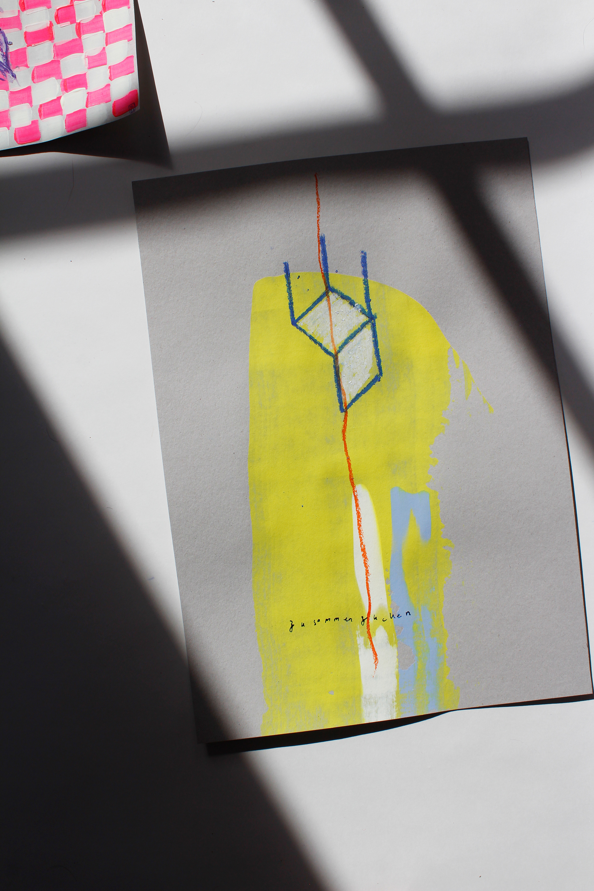 acryl, buntstift und tusche auf grauem papier